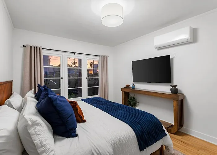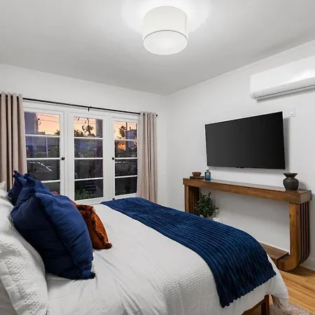 New Historic Flat Patio And Walk-To-All Location villa heeft een complete keuken, voorzien van een oven en een vaatwasser. Cafe Gratitude serveert Amerikaanse specialiteiten en ligt op 150 meter afstand. Gasten hebben gemakkelijk toegang tot Rose & Ruth bushalte, op wandelafstand van nog geen 5 minuten ervandaan.